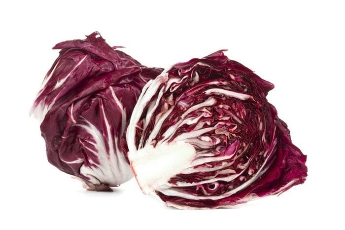 Radicchio has a wide array of growth types, from cute, mini-cabbage heads in a stellar burgundy color to speckled leaves and romaine lettuce size leaves. It lends a bittersweet, unique flavor to salads and brightens up the bowl with contrasting deep red and white color.
