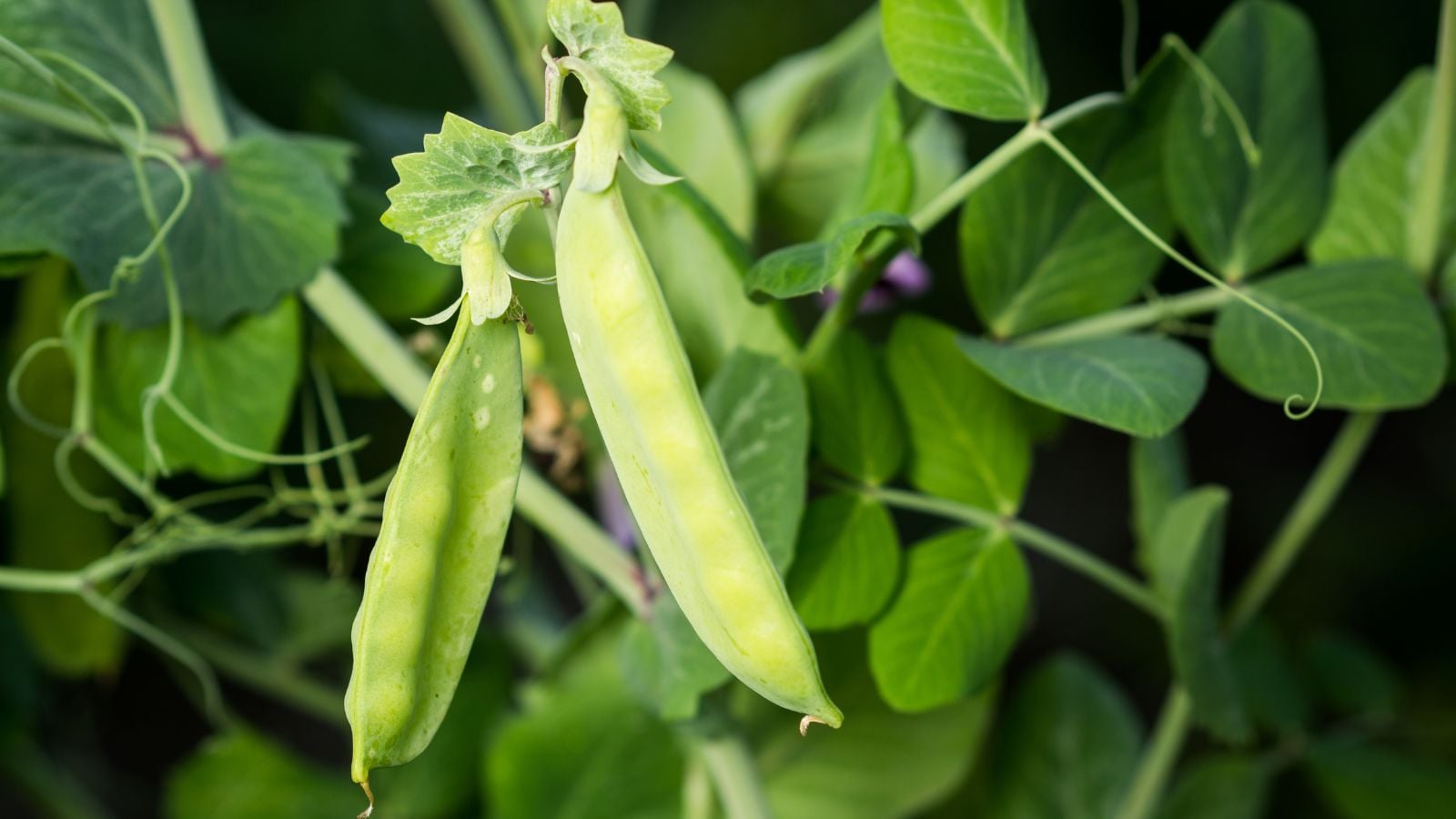 Snow peas are easy to spot in the garden, not only because of their generous harvests, but also thanks to their ornamental flowers. White, pink, and purple blooms add a burst of color before giving way to crisp, edible pods.
