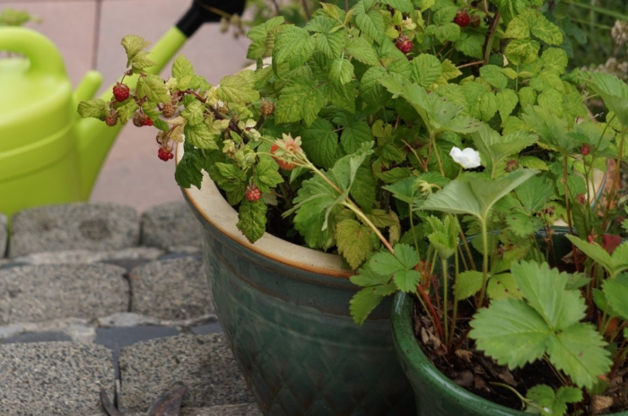 Pot up various mints and alliums and move them in range of your raspberry patch. Deer and some insects are repelled by the smell and taste. Plus, they’ll attract pollinators when they’re in bloom.