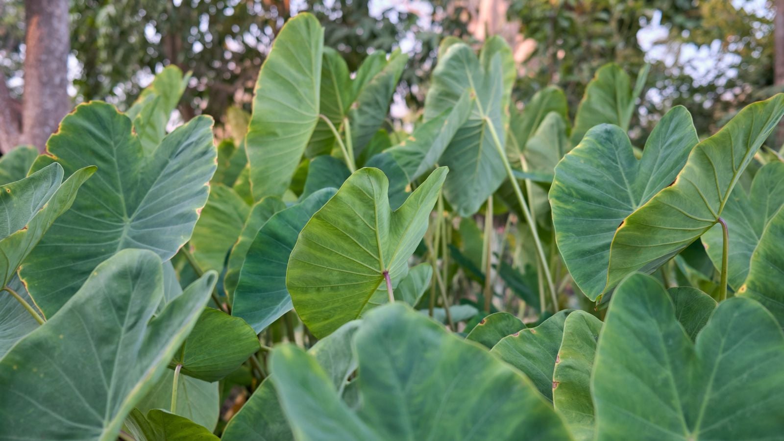 Most cultivars differ primarily in leaf color, but some produce more palatable roots or require specific growing conditions. Taro can be grown in both dry and wet environments, although certain cultivars are suited to only one of these conditions. For reliable root production, ‘Bun Long’ and ‘Elepaio’ are good choices. If you are growing taro purely for ornamental value, ‘Black Magic’, ‘Blue Hawaii’, or ‘Hilo Beauty’ are excellent options.
