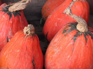 Have you ever gone to a pumpkin patch and seen dark pumpkins with warts growing all over the skin? This is called the Futsu Black pumpkin, a deep-ribbed and watered quash that is VERY tasty—even though it doesn’t look like it!