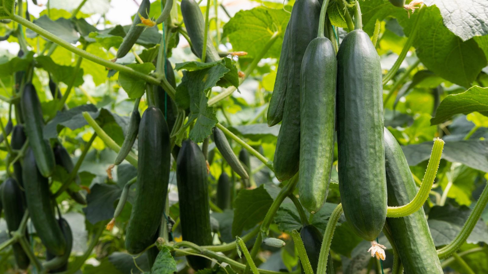 The best way to cultivate cucumbers is by building trellises over them. They’ll climb to the top of the trellises and their fruits will overhang, making them easy to harvest.